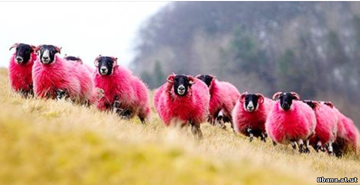 Из-за участившихся случаев гибели животных под колесами авто на шоссе фермеры в Шотландии решили окрасить овец в яркие цвета. Сработало!